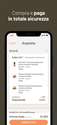 Потопете се в картата на Foodbarrio, за да намерите италиански регионални деликатеси, изработени със 100% италиански произход. Пазарувайте сигурно и директно от фермери и занаятчии, без посредници, гарантирайки свежест и произход. Бъдете винаги информирани с известия за всяка ваша поръчка, от момента на изпращане до пристигането й при вас, осигурявайки ви пълен контрол и спокойствие. Това е вашата врата към несравними кулинарни преживявания.
