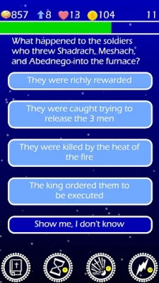 Jesus Bible Trivia Quiz Up Games ще тества вашата ерудиция, започвайки с лесни въпроси и прогресивно увеличавайки трудността до нива, които ще предизвикат и най-опитните богослови. С над 500 въпроса, обхващащи ключови моменти от Сътворението, историята на Моисей и Изхода, Ноевия ковчег, живота на цар Давид в Стария завет, до ученията и живота на Исус Христос в Новия завет, ще изследвате всеки аспект на Божието слово. Използвайте стратегически помощните средства като "пясъчен часовник" за удължаване на времето, "бомбата" за премахване на грешни отговори или "светкавицата", когато трябва да сте абсолютно сигурни в отговора си.