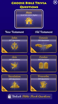 Открийте нов начин да изучавате Библията със забавна игра с любопитни факти. Тя включва над 2000 въпроса, библейски стихове, красиви сертификати за постижения, глобална класация и визуални индикатори за напредък. Учете се и се забавлявайте едновременно!