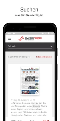 Приложението Swiss Regiomedia се отличава със своята безкомпромисна близост до читателя, предоставяйки не просто новини, а дълбоки прозрения в ежедневието, културата и събитията около вас. Всеки ден ще намирате изчерпателни потребителски и сервизни информации, които ви помагат да вземате информирани решения и осигуряват висока достоверност на съдържанието. Насладете се на богато съдържание, включващо местни анализи, увлекателни развлекателни материали и специални тематични рубрики, които се обновяват всяка седмица. Освен това, приложението служи като ценен ресурс за откриване на услуги и продукти от местния бизнес и доставчици, подкрепяйки икономиката на общността ви.